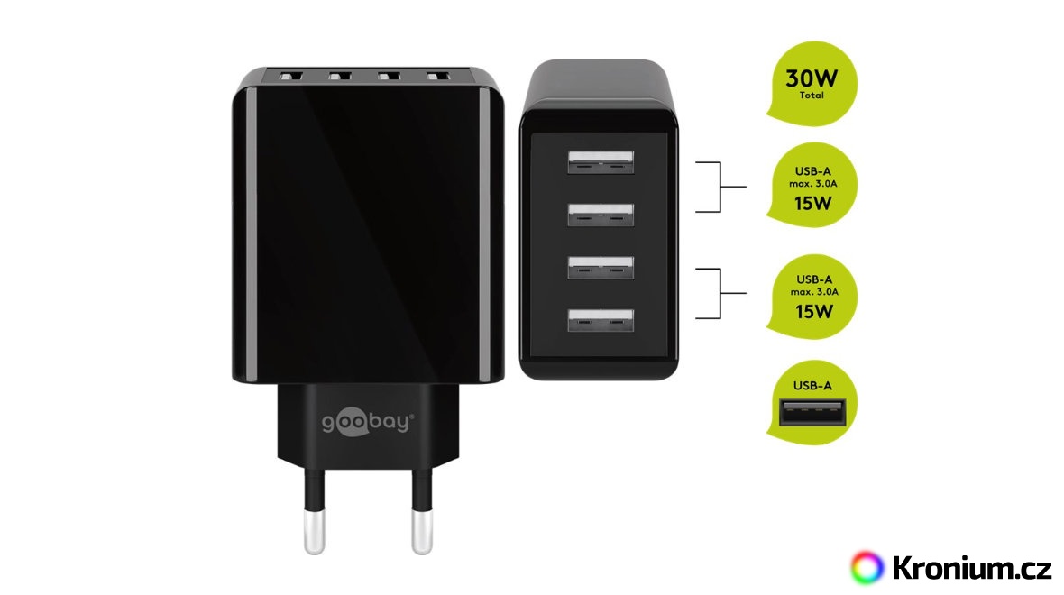 - Výstupní napětí 4x 5 V, čtyři USB výstupy.