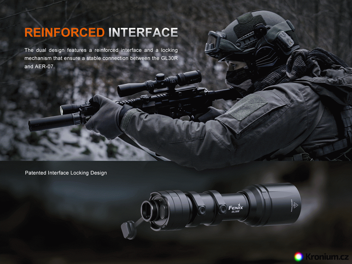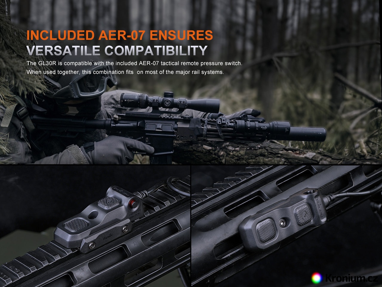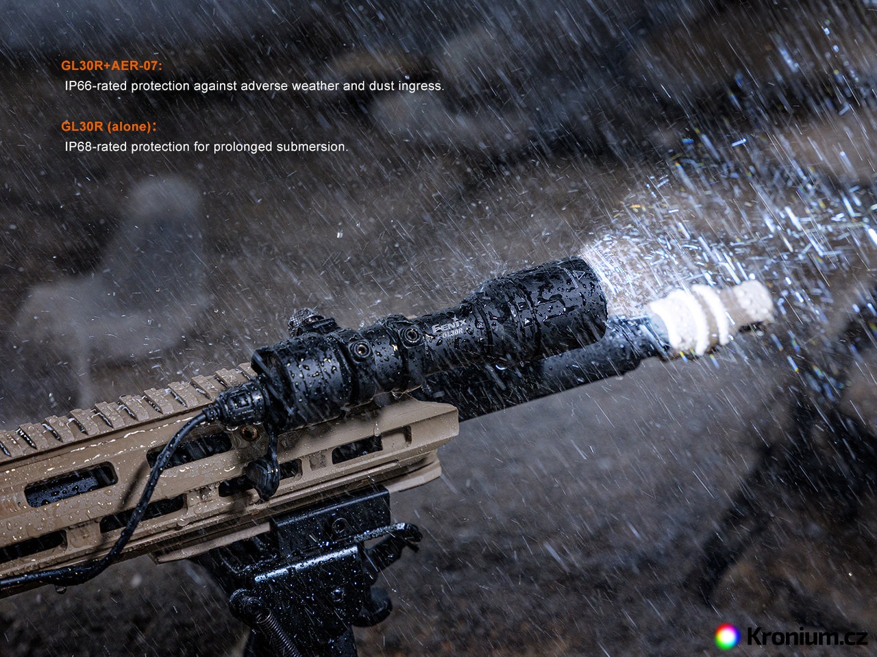 Taktická nabíjecí LED svítilna Fenix GL30R je zkonstruována speciálně pro použití na dlouhých zbraních. Nabízí špičkový výkon světla 800 ANSI lumenů s extrémním dosvitem až 630 metrů. Svítilna je napájená jedním Li-ion akumulátorem typu 18650 s kapacitou 3400 mAh, který se dobíjí přímo ve svítilně přes multifunkční USB-C port a je součástí balení. Alternativně lze použít i dvě jednorázové lithiové baterie CR123A. Ovládání svítilny je řešeno taktickým zadním spínačem nebo přibaleným dálkovým kabelovým spínačem AER-07. Ten se zapojuje do USB-C portu a nabízí uzamykací posuvník proti nechtěné aktivaci. Montáž na zbraň je vysoce variabilní – svítilna se dodává s montážemi pro standardní lištu Picatinny (MIL-STD-1913) i pro systém M-Lok, což umožňuje flexibilní instalaci v přímé (in-line) i vyosené (offset) pozici. Svítilna je tak dokonalým nástrojem pro profesionály, ozbrojené složky, sportovní střelce, lovce i airsoft.