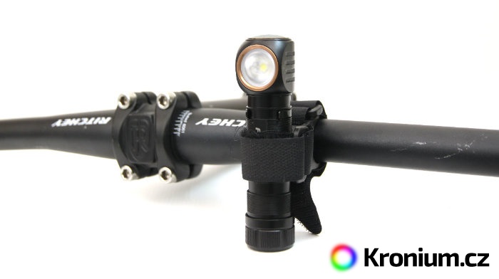 Další možností, jak upevnit světlo na helmu je možnost připevnit výše zmíněné cyklosvítilny pomocí držáku Fenix ALD-08. Tento držák, který se upevňuje pomocí plastových stahovacích pásek se dá dobře využít i pro upevnění cyklosvítilny na plochá silniční aero řídítka a oversize řídítka s větším průměrem než 35 milimetrů, které zvládnou standardní držáky.