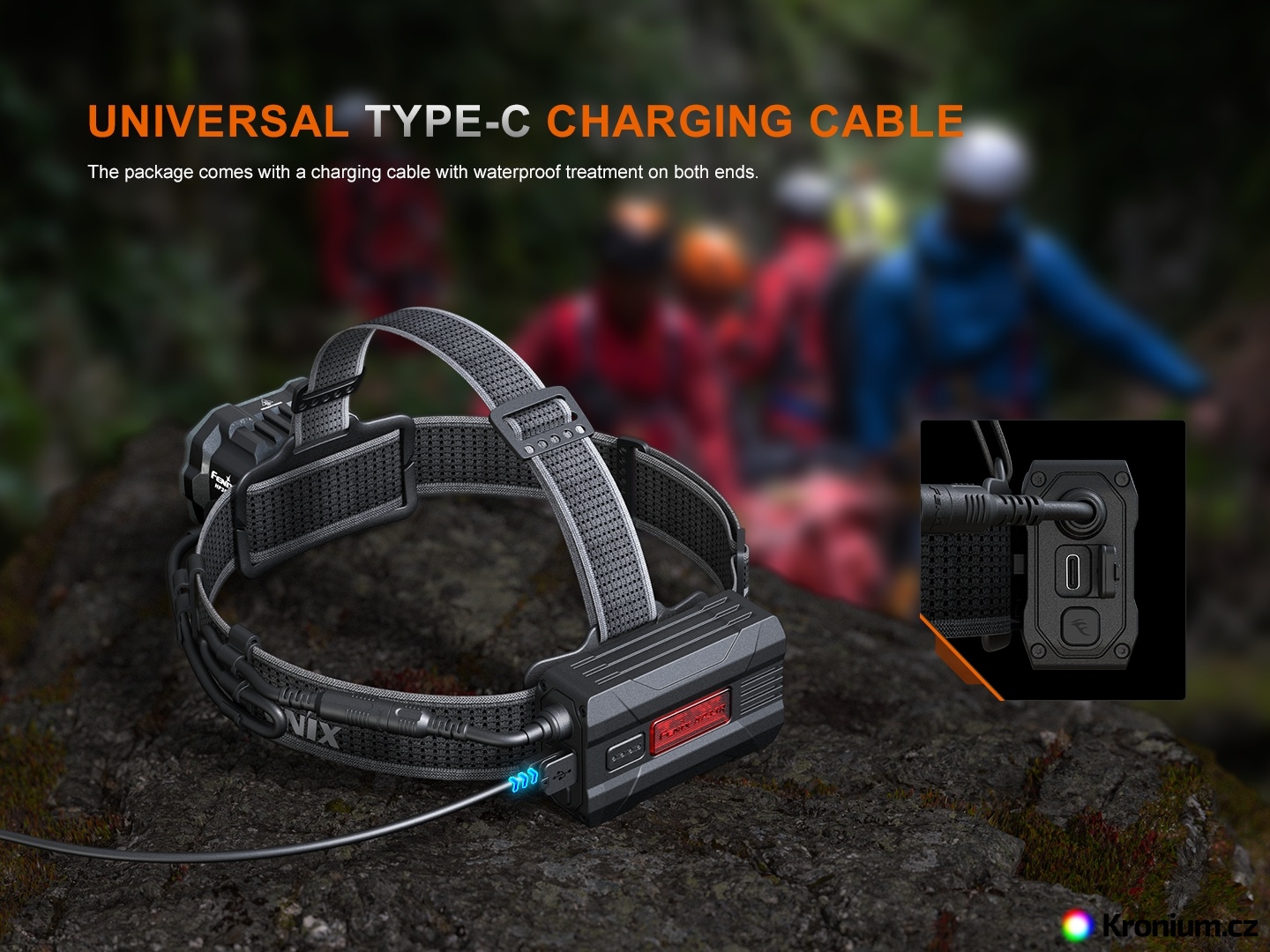 - K čelovce lze dokoupit pouzdro Fenix APB-30, výkonný USB adaptér do elektrické sítě, USB adaptér do auta a USB-C kabel.