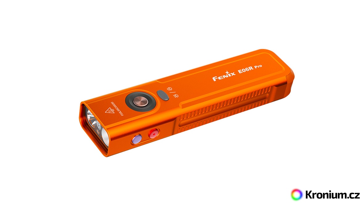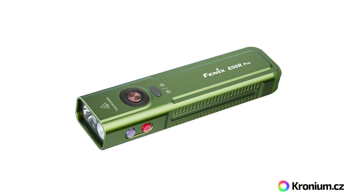 Fenix E06R PRO je výkonná plochá nabíjecí svítilna, která posouvá hranice kapesních EDC modelů. Oproti svým menším variantám (Fenix E06R a Fenix E03R V2.0) nabízí nejen násobně vyšší výkon, ale i unikátní kombinaci funkcí včetně stroboskopu, ultrafialového světla, laserového ukazovátka a inovativního ovládání. I přes stále kompaktní plochý design, který skvěle padne do kapsy, nabízí vysoký světelný tok až 1600 lumenů (ANSI) a dosvit až 160 metrů. Svítilna je osazena dvojicí špičkových diod (Luminus SST20 a SFT25), které umožňují přepínat mezi chladným bodovým (spotlight) a neutrálním širokým (floodlight) kuželem světla. K napájení slouží vestavěný Li-Pol akumulátor s vysokou kapacitou 1650 mAh, který zajistí výdrž až 111 hodin v úsporném režimu Moonlight. Nabíjení je řešeno moderním USB-C konektorem přímo na těle svítilny. Fenix E06R PRO disponuje pěti ežimy bílého dálkového světla, pěti režimy neutrálního širokého světla, UV světlem s vlnovou délkou 365 nm o síle 1300 mW, červeným laserem (ukazovátkem) a několika režimy tzv. Breathing light - světla okolo spínacího tlačítka a v patce svítilny o síle 0,5 až 1 lumen, které využijete pro nenápadnou signalizaci, či identifikaci umístění svítilny. Ovládá se porstřednictvím bočního tlačítka, přepínače dálkového a širokého světa a taktického spínače v patce. Svítilna je dodávána včetně pevného klipu, takže ji můžete uchytit na kapsu či popruh batohu. Praktický je také indikátor stavu nabití baterie v tlačítku. Svítilna je skvělá pro EDC a díky plochému tvaru ji můžete mít stále u sebe aniž by překážela.