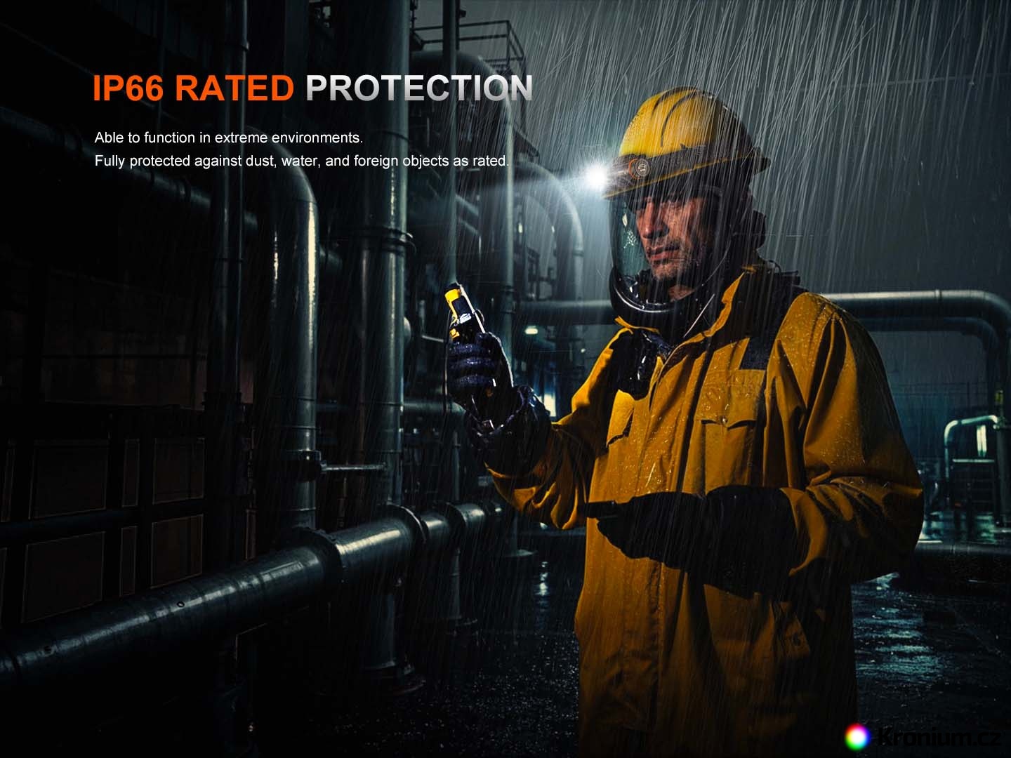 - Voděodolná a prachotěsná dle standardu IP66 (ostřikování silnými proudy vody ze všech směrů).