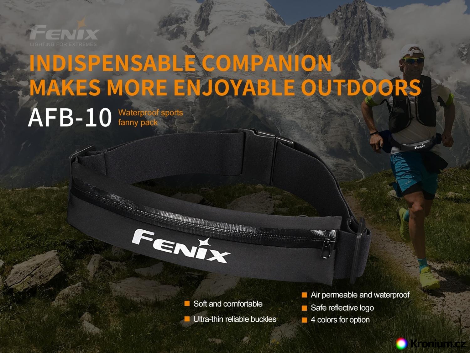 Sportovní ledvinka Fenix AFB-10 je určená pro běhání a další sportovní činnosti. Ledvinka má vnitřní vrstvu z vodotěsného materiálu a vejde se do ní i větší smartphone. Také je vybavena průvlekem pro sluchátka, takže můžete při sportu poslouchat svou oblíbenou hudbu. Nylonový pásek a tenká spona zaručují pohodlné nošení. Ledvinka je také vybavena logem Fenix v reflexním provedení, které zlepšuje vaši viditelnost a bezpečnost při nočním sportování.