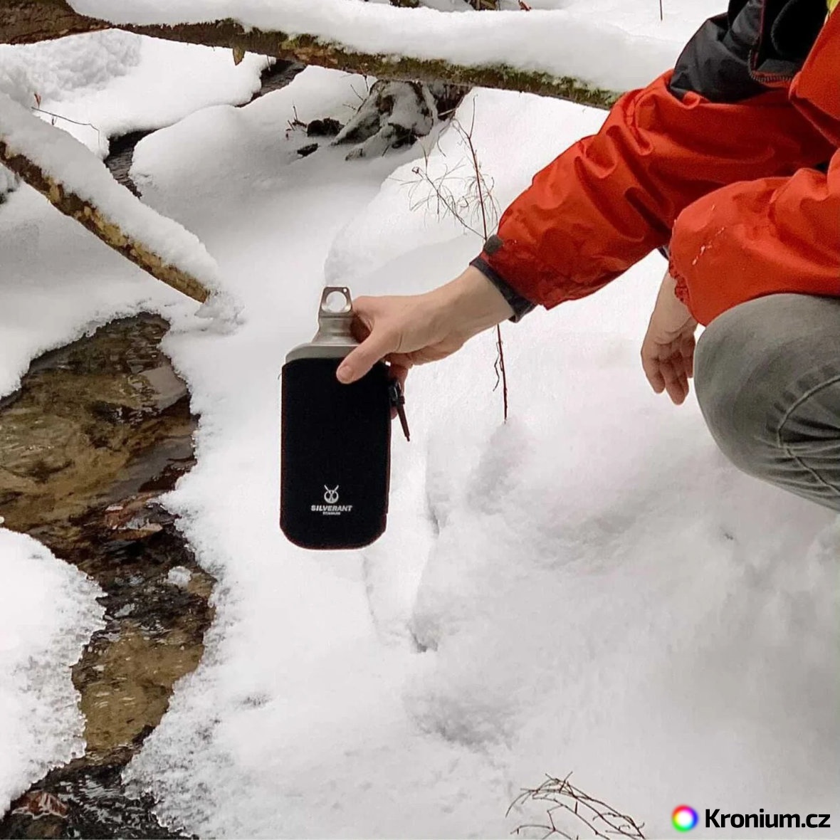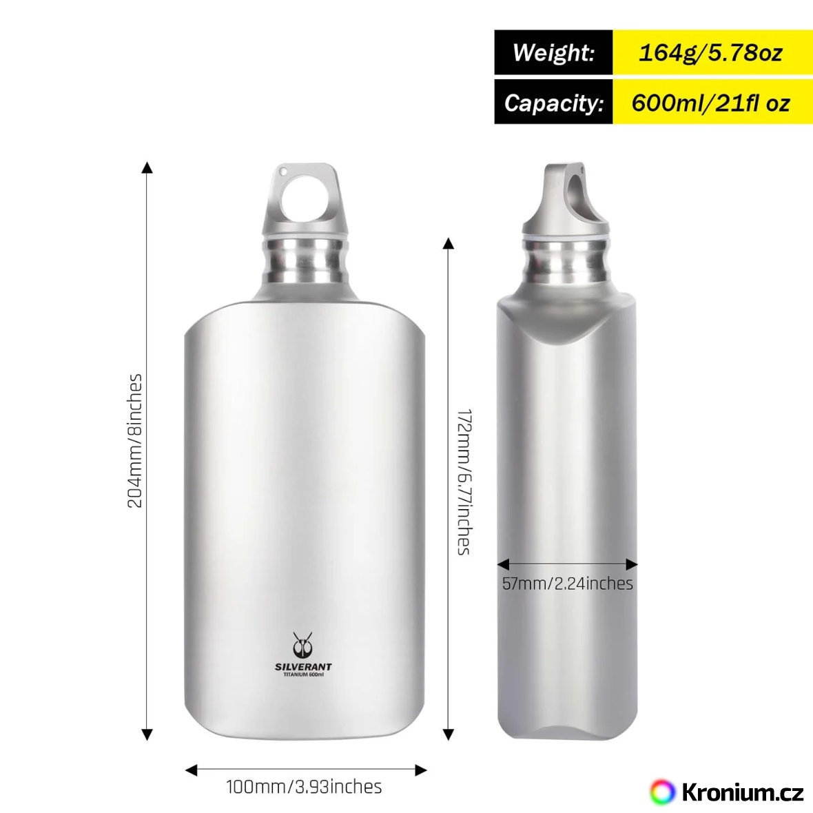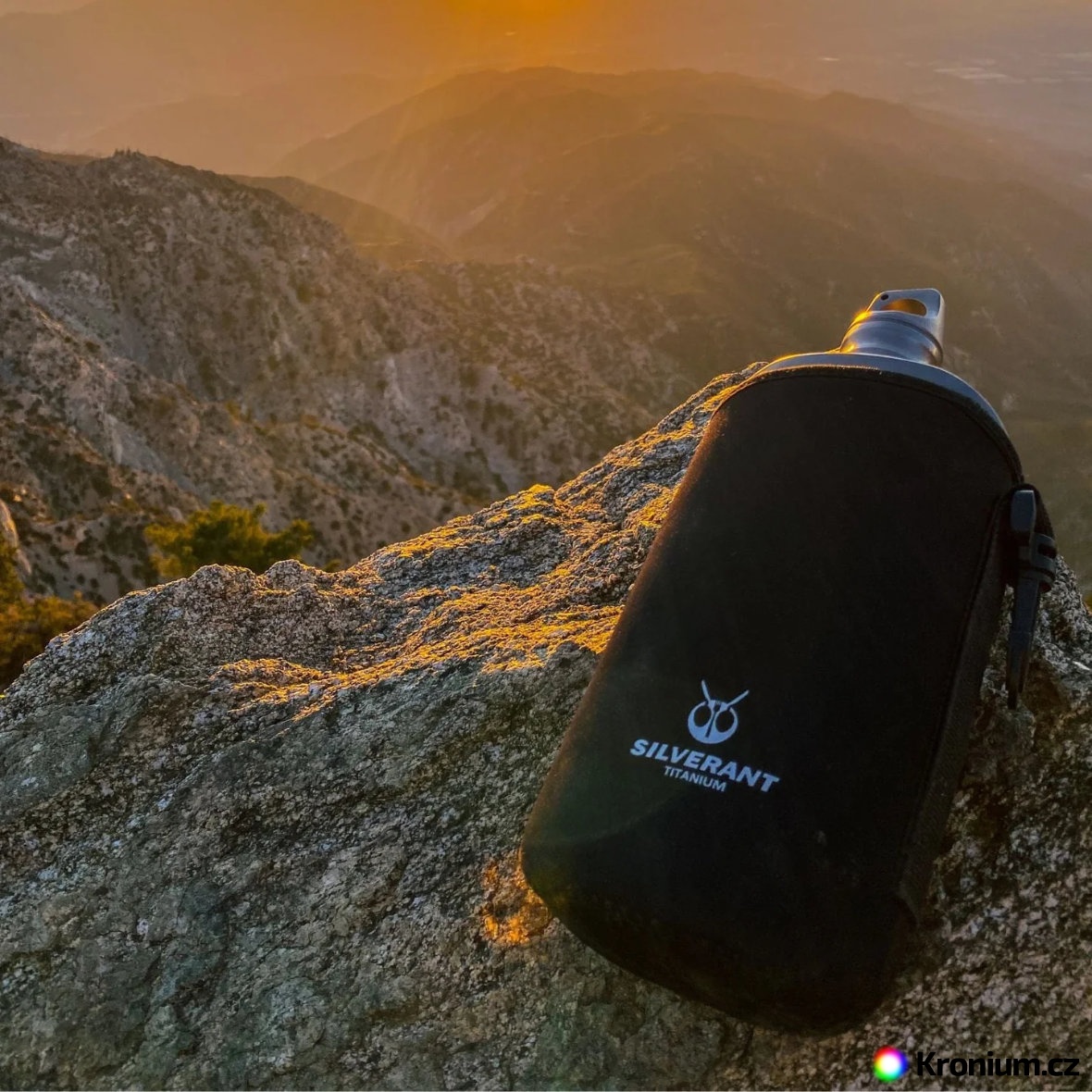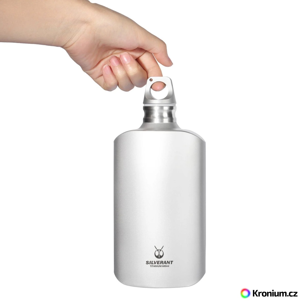 Ultralehká, odolná láhev SilverAnt z titanové slitiny o objemu 600 ml je vyrobena pro celoživotní dobrodružství. Noste svůj oblíbený nápoj všude s sebou, do kanceláře, při sportování, na turistiku i cestování. Praktický plochý slim tvar nepřekáží v batohu a lépe padne i do postranních kapes. Láhev má víčko s poutkem, takže se dá uchytit např. za karabinu. Dodává se s termo pouzdrem, kávu a čaj si vychutnáte déle teplé a v létě Vám pouzdro udrží optimální teplotu chlazených nápojů. Použitý materiál nepředává přenášeným tekutinám žádné pachutě ani pachy. Neobsahuje BPA a je odolná vůči korozi.